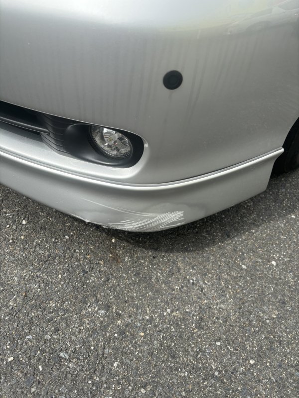 フロントバンパーを外壁に当ててしまい、気になる擦り傷ができてしまい、修理のご相談で来店頂きました。