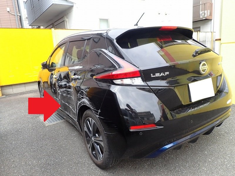 【日産リーフ】左側面キズ・ヘコミ修理事例|カーコンビニ倶楽部 千代田自動車