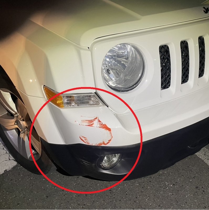 バンパーに赤く色が付いている状態でした。