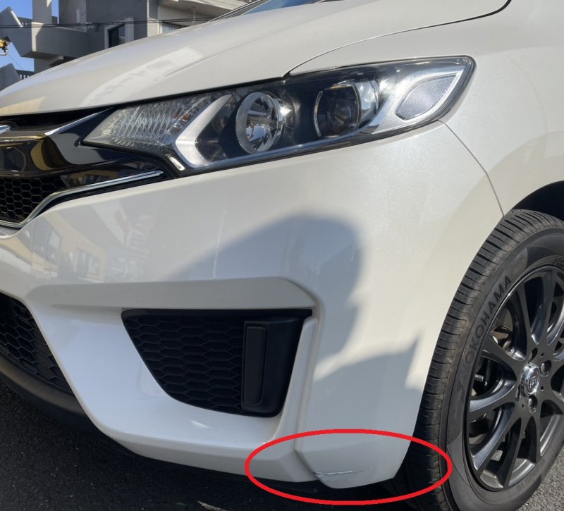 【 ホンダ フィット サイドシル フロントバンパー 鈑金 塗装 修理 】 キズ へこみ 茨城県 水戸市 鈑金塗装修理事例