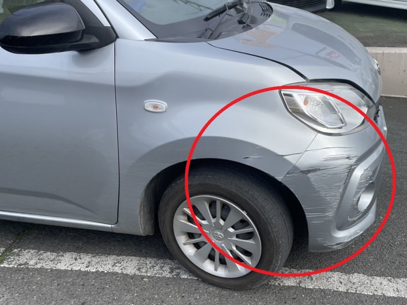 フロントバンパーからフェンダーにかけて広い範囲でキズがある状態でした。