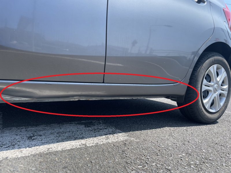 ドアの下側を擦ってしまったようで、ドア2枚分ぐらいの長さでキズができていました。。強くへこんでいる箇所もありました。