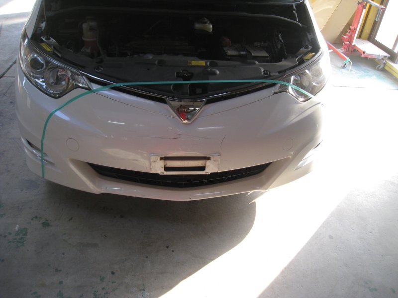 【トヨタ・マジェスタリヤ左部バンパーのキズ・ヘコミ修理】 茨城県水戸市・勝田市・内原町・那珂湊市・大洗町・茨城町・ひたちなか市での鈑金塗装修復事例