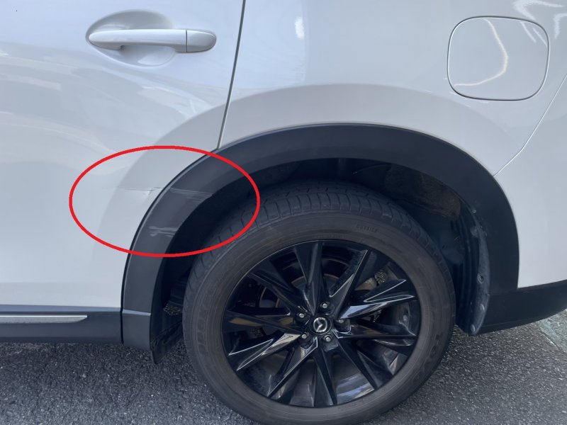 リアドア、タイヤ上のアーチ状の樹脂部分にキズへこみがありました。