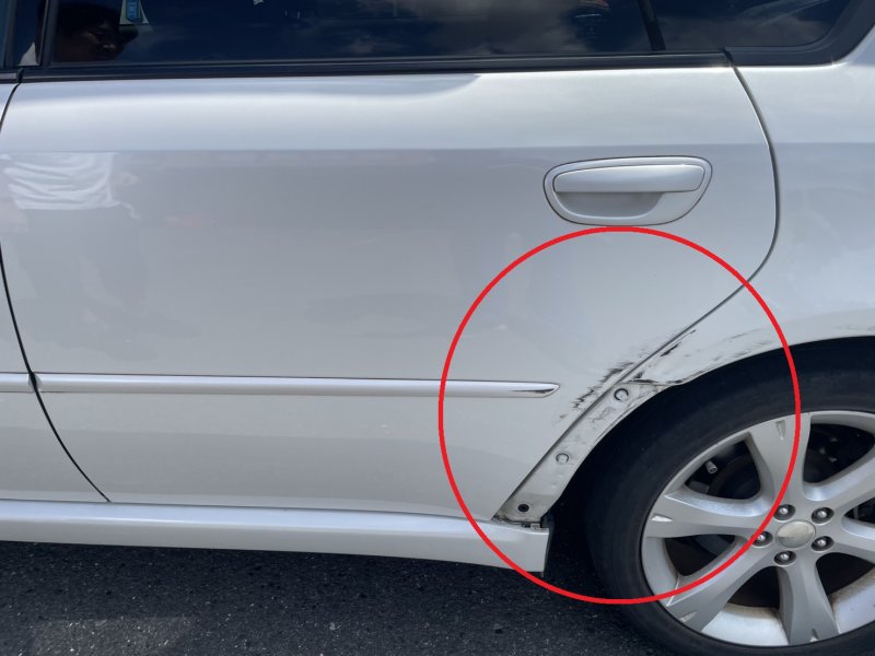 【 スバル レガシィB4 リアクォーターパネル 部品交換 鈑金 塗装 修理 】 キズ へこみ 茨城県 水戸市 鈑金塗装修理事例