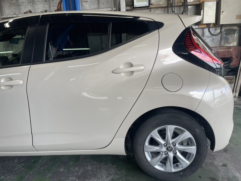 【 トヨタ アクア リアドア リアフェンダー ロッカパネルモールディング タイヤホイール 保険修理 鈑金 塗装 修理 】 キズ へこみ 茨城県 水戸市 鈑金塗装修理事例