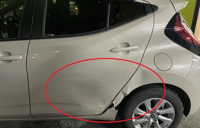 後方からの衝撃により、リアドアからクォーターパネルにかけて大きく変形していました。 ロッカパネルモールディングにも破損が見られ、タイヤのホイールにもキズが生じている状態でした。 損傷範囲が広く、見た目だけでなく走行にも影響する可能性があったため、保険修理でしっかりと対応させていただきました。