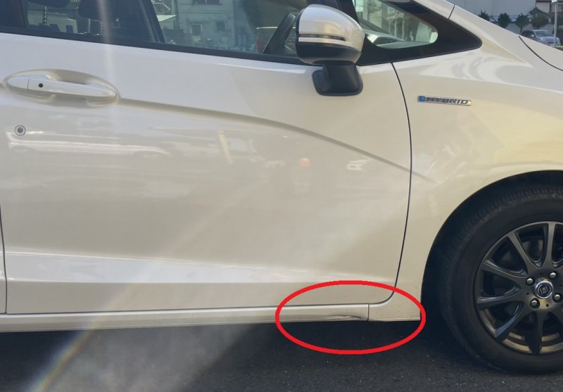 【 ホンダ フィット サイドシル フロントバンパー 鈑金 塗装 修理 】 キズ へこみ 茨城県 水戸市 鈑金塗装修理事例