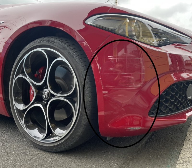 【 アルファロメオ ジュリア フロントバンパー 鈑金 塗装 修理 】 キズ へこみ 茨城県 水戸市 鈑金塗装修理事例