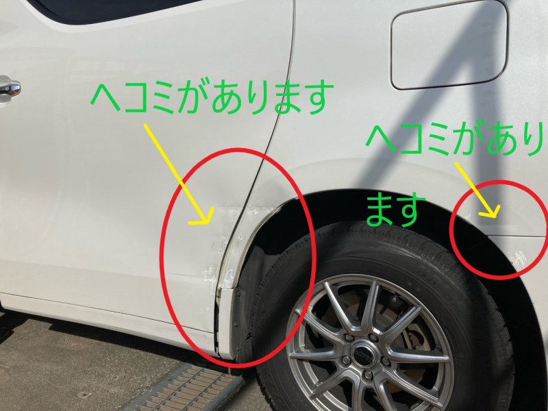 | 修理の箇所・サービス内容 | スライドドア・リアフェンダー キズ、へこみ修理 |