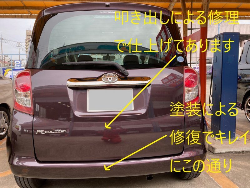 | 修理の箇所・サービス内容 | バックドア へこみ修理 バンパー修理 |