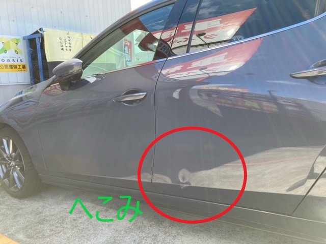 愛知県知多市|マツダ3(マツダ)のキズ・へこみ直し事例(リアドア へこみ修理)