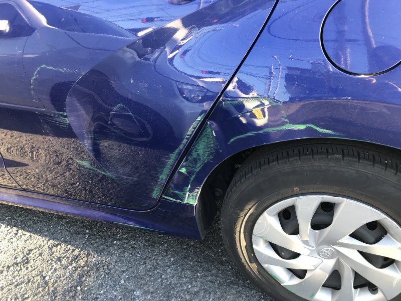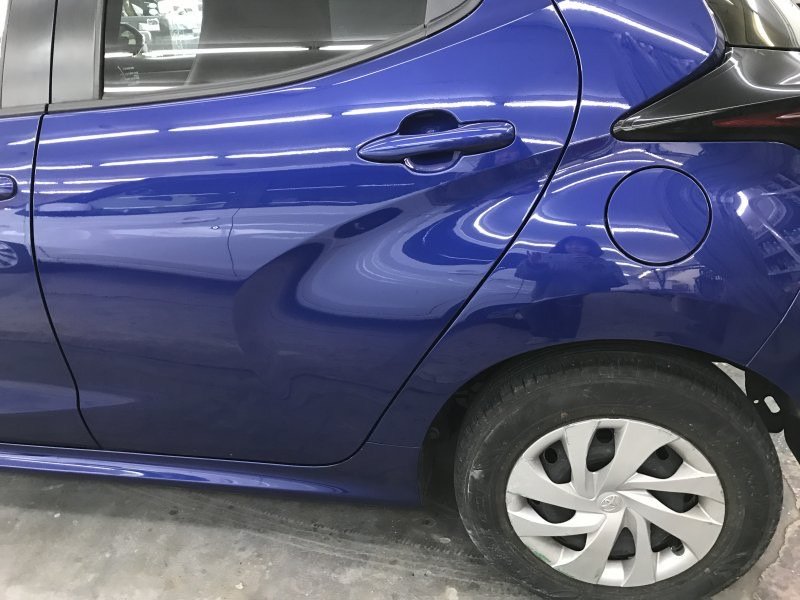 滋賀県湖南市|ヤリス(トヨタ)のキズ・へこみ直し事例(リアドア・リアフェンダー鈑金塗装)