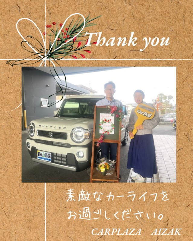 ハスラーのソフトベージュ、おめでとうございます🎉納車お祝い申し上げます! 🚗✨おしゃれな色合いですね。ハスラーのソフトベージュは、都会の風景にも、自然の中にもよく馴染む色なんですよ🌿特にこの色は、個性と落ち着きの両方を持ち合わせてるから、お出かけもますます楽しみですね!リース契約でのご利用だから、メンテナンスも安心してお任せください👍安全運転で素敵なカーライフをお楽しみくださいね🙂さあ、新しい相棒と一緒に、どんな冒険が待っているのか楽しみですね!ドライブがますます楽しくなることでしょう🚙💨これからのお付き合いも、どうぞよろしくお願いいたします😊貴重なお時間を共に楽しく過ごしましょう❣️