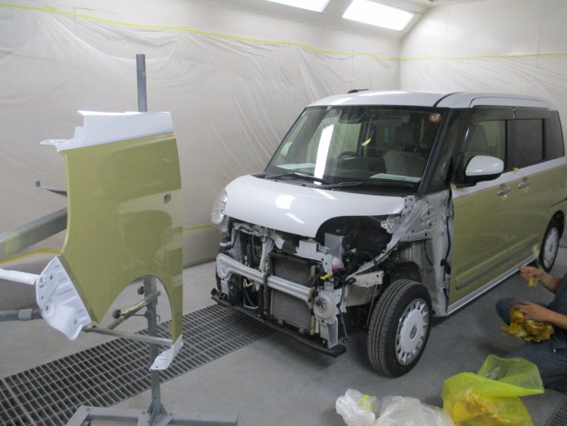 愛知県一宮市|キャンバス(ダイハツ)のキズ・へこみ直し事例(フロントバンパー、左側フロントフェンダー車両保険修理)