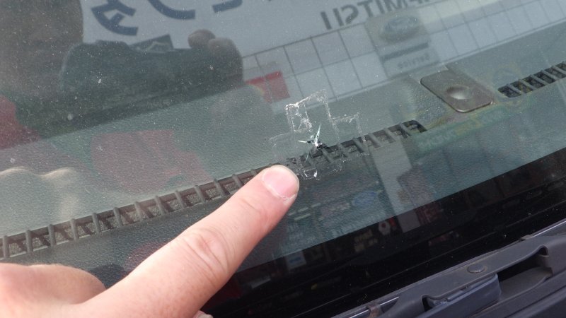 お客様から、高速道路を走行中に飛び石の被害にあって、フロントガラスにひびが入ってしまい当店にご相談いただきました。