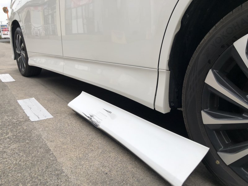 スライドドア下部のマッドガード部のキズでご入庫されました。