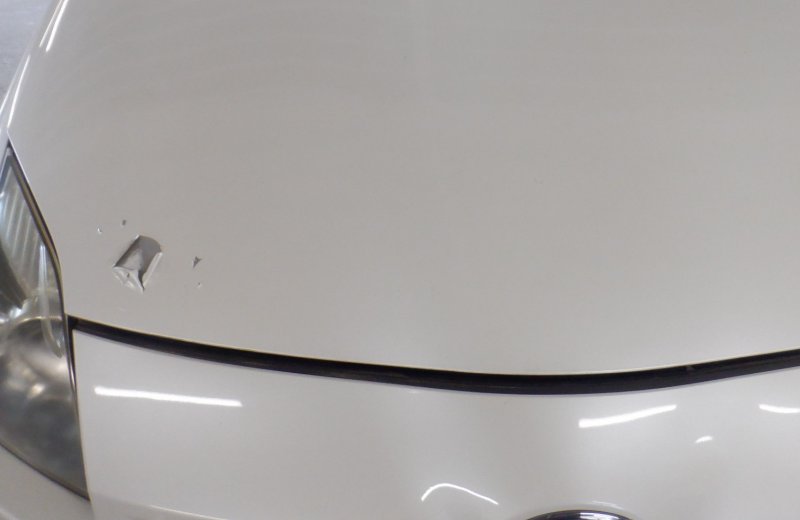 大きく凹んでしまい、その衝撃でヘッドライトの一部も破損してしまっていました。