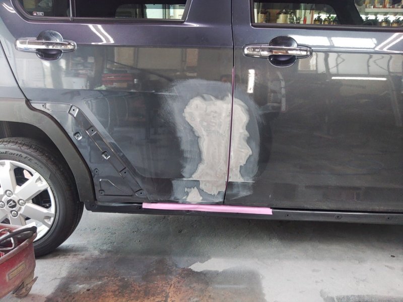 越谷市 草加市 吉川市 川口市 松伏町 修理 整備 板金 塗装 補修 キズ へこみ ダイハツ タフト ガンメタ メタリック グレー フロントドア リヤドア