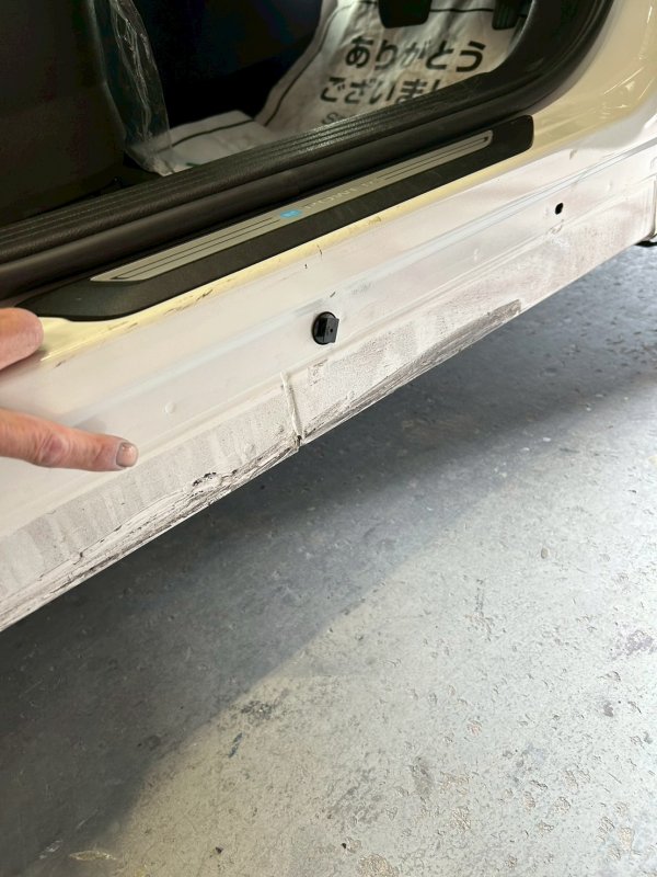 愛知県海部郡大治町|ノート(日産)のキズ・へこみ直し事例(サイドスポイラー サイドステップ 鈑金修理)