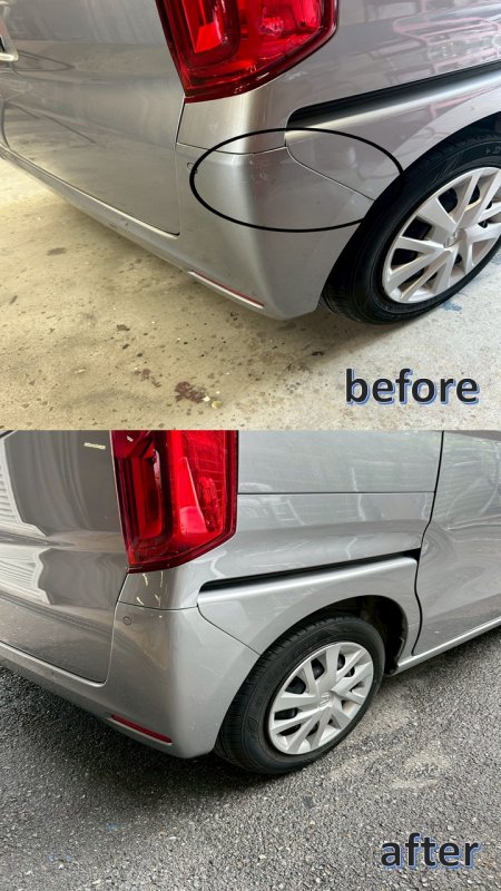 愛知県海部郡大治町|N-BOX(ホンダ)のキズ・へこみ直し事例(リヤバンパーへこみ修理)