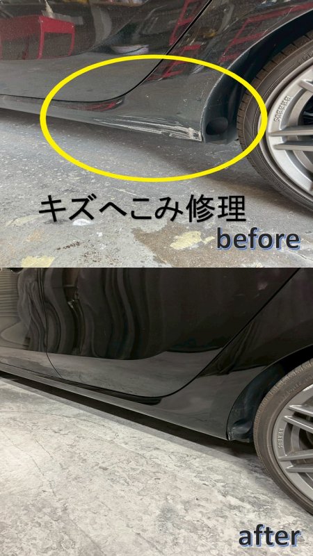 | 修理の箇所・サービス内容 | 左側サイドスポイラー、サイドステップ、リヤフェンダー周辺鈑金修理になります。 |