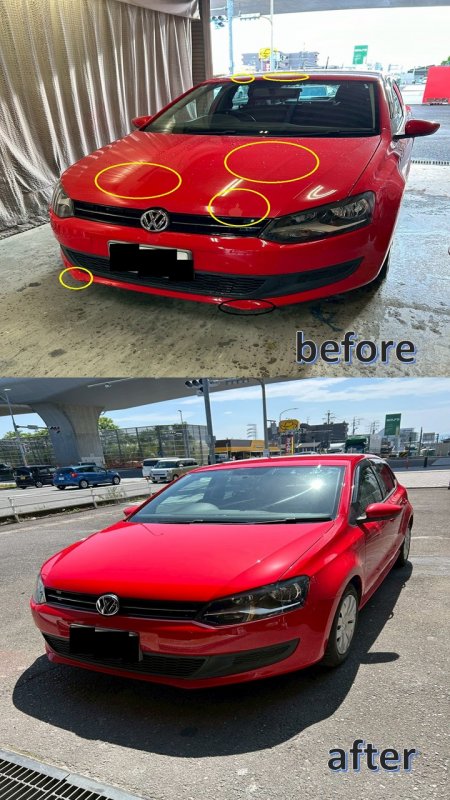 愛知県海部郡大治町|ポロ(フォルクスワーゲン)のキズ・へこみ直し事例(ボンネット、天井再塗装)
