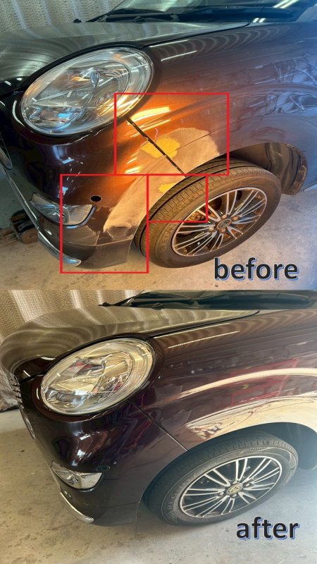 愛知県海部郡大治町|キャスト(ダイハツ)のキズ・へこみ直し事例(フロントバンパー・左フロントフェン)