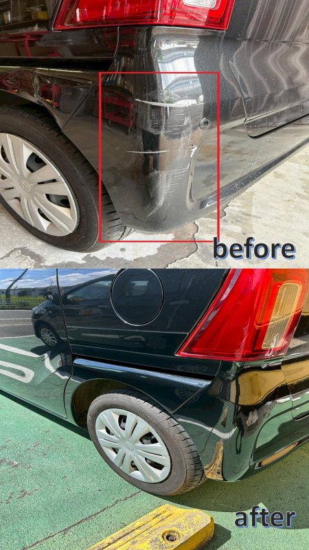 愛知県海部郡大治町|タント(ダイハツ)のキズ・へこみ直し事例(リヤバンパーキズへこみ修理)