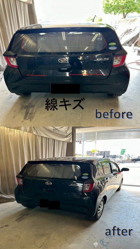 ダイハツミライース バックドアキズ修理になります。全体的に引っかき傷が付いてたそうです。