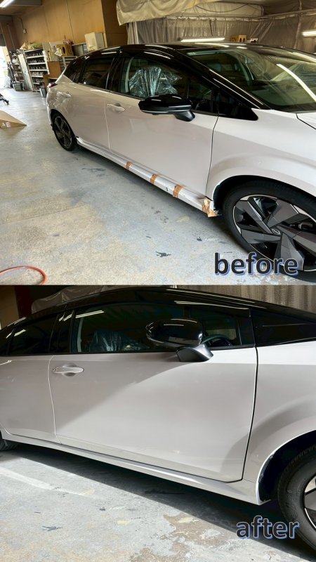 愛知県海部郡大治町|ノート(日産)のキズ・へこみ直し事例(サイドスポイラー サイドステップ 鈑金修理)