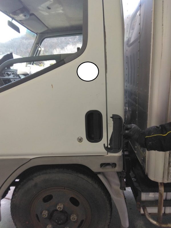 【長野県 長野市 松代 川中島 篠ノ井 須坂市 千曲市】三菱・キャンター、DX、平成8年式、KC-FB501A、左ドア、アウターハンドル交換作業事例、ドアノブ外れた、ドアハンドル取れ修理、なるべく安く修理、修理費用抑えたい、高額修理見積、中古部品検索、リサイクルパーツ検索、最安値、最短修理日数時間、安心安全