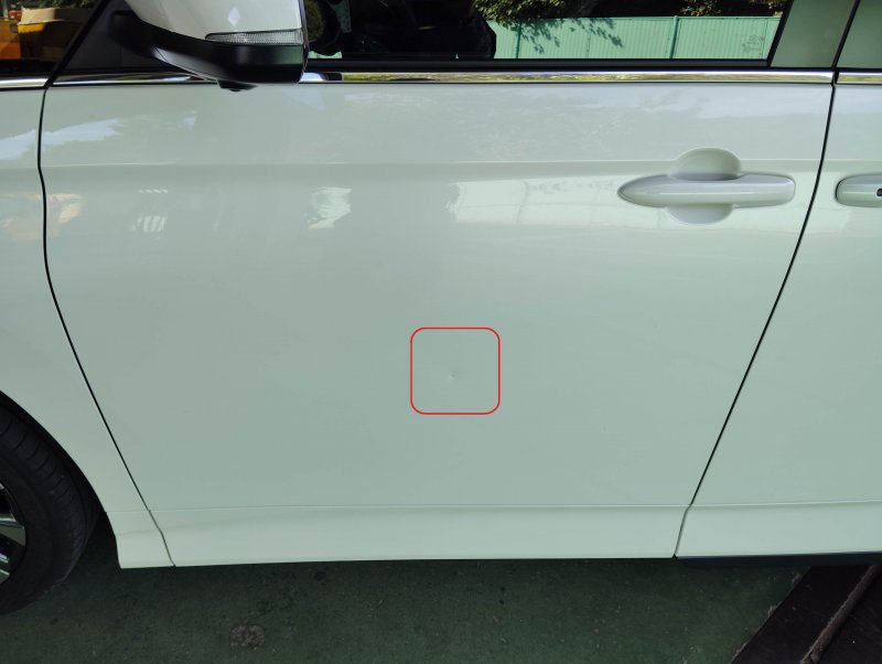 今回は、トヨタ・ヴォクシーハイブリッドの助手席ドアにできたキズ・ヘコミ修理の事例をご紹介いたします。