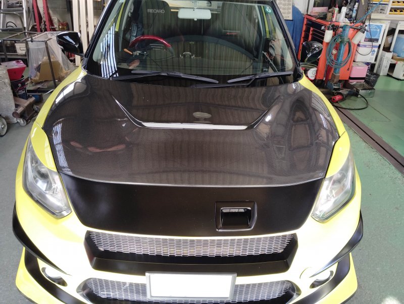 【スズキ スイフトスポーツ】カーボンボンネット交換作業事例|カーコンビニ倶楽部 小田切車体 まつしろ店(長野市)