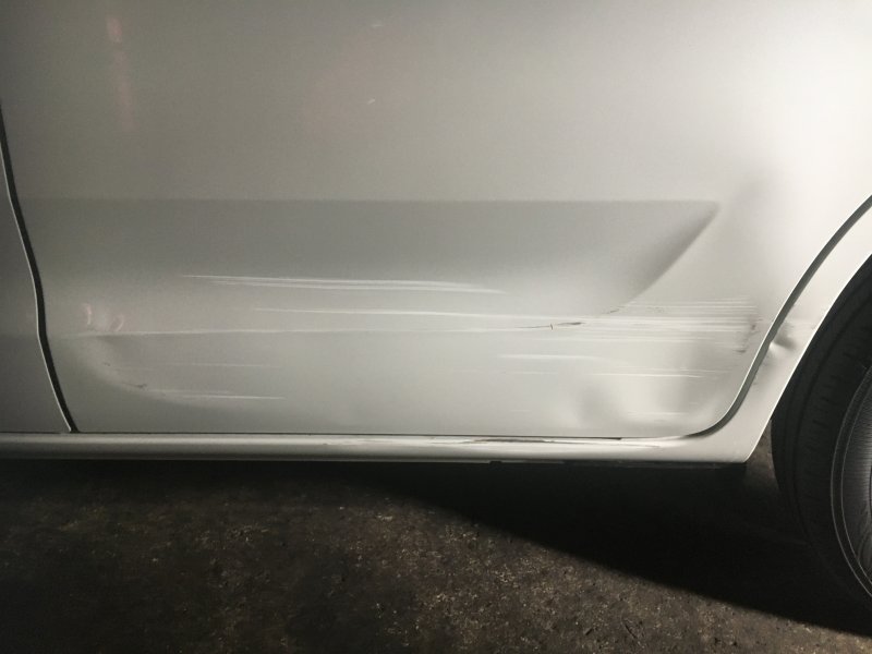 リアドアを板金修理の予定でお預かりいたしましたが、保険を使用されると言うことで、新品交換で対応させていただきました