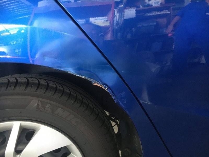 大和高田市 ニッサン キューブ 左 リヤフェンダー リヤバンパー 鈑金 板金 塗装 ペイント 修理