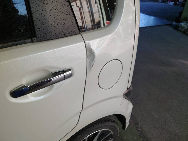 奈良県 大和高田市 三菱 ekスペース 左スライドドア 左リヤクォーター 凹み 鈑金 塗装 軽自動車 交通事故 車両保険 車の修理
