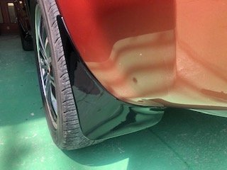 日産 ムラーノ リヤドアとリヤバンパの鈑金塗装と素地のマッドガードをツヤのあるブラックに塗装して欲しいととのご依頼でした!