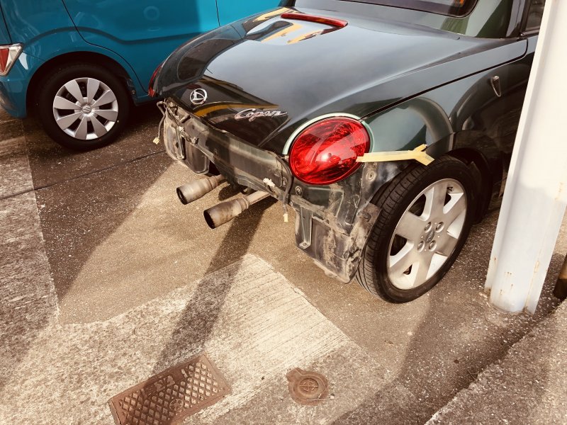 三菱ekワゴンにお乗りのお客様よりバンパーをポール等に当ててしまい、修理のご相談で来店頂きました。