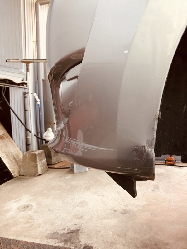 ペーパーで表面の形状を整えて、ボディーカラーを丁寧に合わせる作業を行い早く安く元通りキレイに修理させて頂きました。