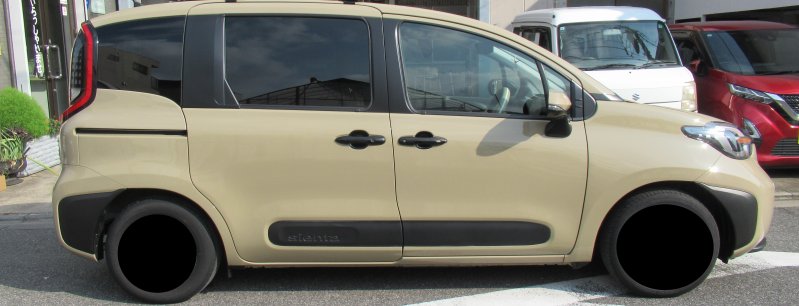 江戸川区鹿骨 トヨタ・シエンタ 保険修理 フロントバンパーキズへこみ直し バンパー修正塗装、タイヤー交換、ホイールカバー交換の修理事例