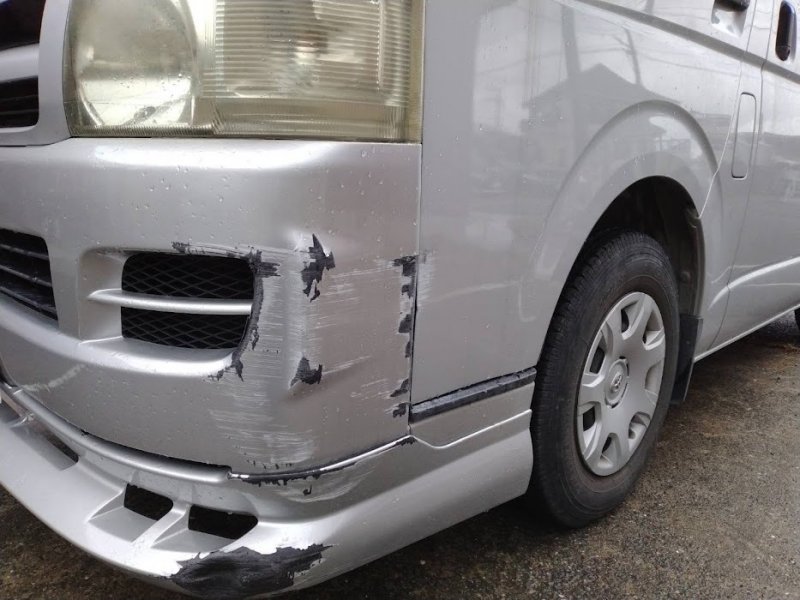 熊本県玉名市|ハイエース(トヨタ)のキズ・へこみ直し事例(前バンパー キズ ヘコミ 修理 鈑金)