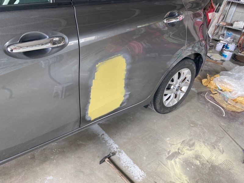 パテをあて研磨しドア、ロッカパネルの形を整えたら