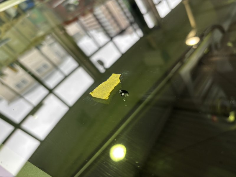 トヨタ プリウスのフロントガラスに飛び石による損傷が見られる状態でご入庫いただきました。