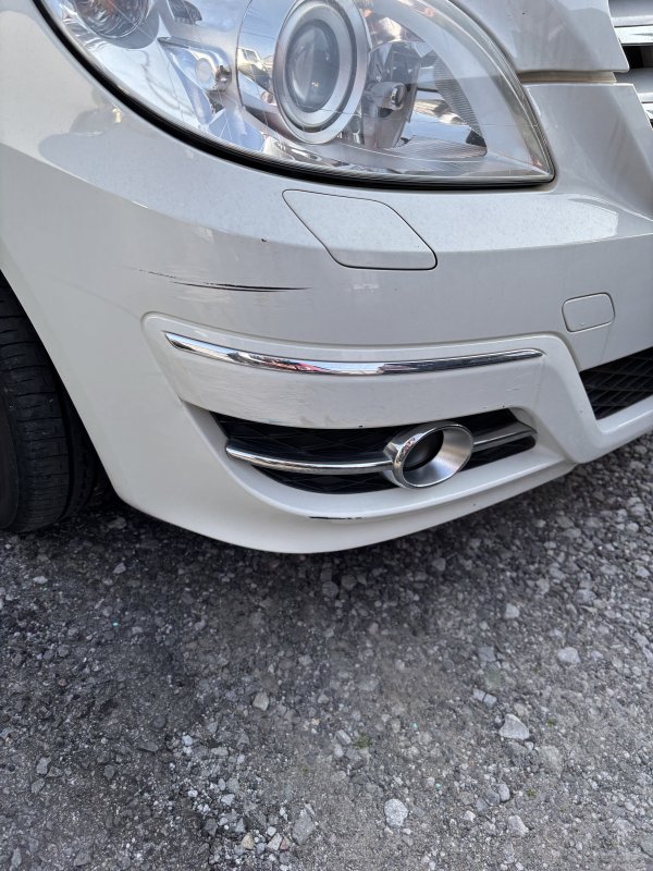 フロントバンパーにスリキズがあったベンツの修理を行いました。