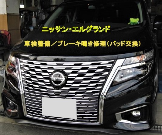 立川市若葉町 日産・エルグランド 車検・法定点検とブレーキパッド交換