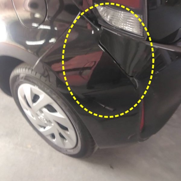 広島県呉市|アクア(トヨタ)のキズ・へこみ直し事例(リアバンパー割れ修理)