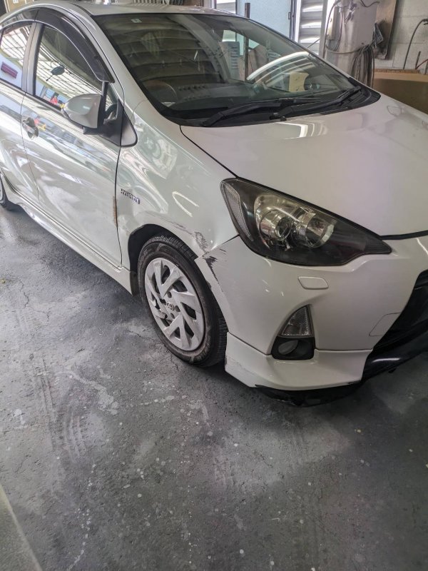 広島県呉市|アクア(トヨタ)のキズ・へこみ直し事例(フロントバンパー フロントバンパースポイラー フロントドア フロントフェンダー ホイールキャップ)