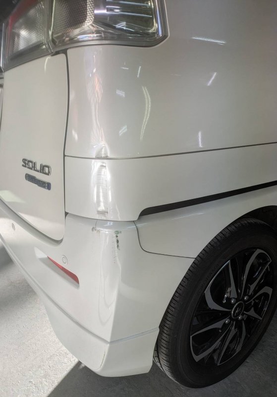 広島県呉市|ソリオ(スズキ)のキズ・へこみ直し事例(リアバンパー、リアフェンダー)