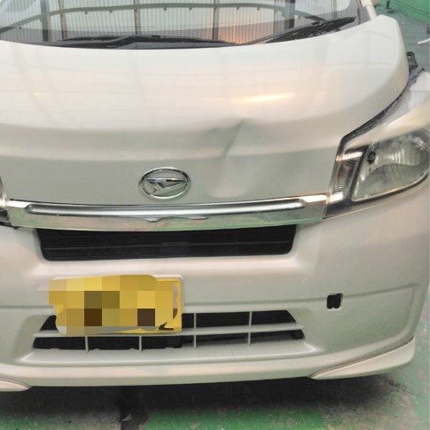 広島県呉市|ミラ(ダイハツ)のキズ・へこみ直し事例(ボンネット、バンパー、ナンバープレート損傷)